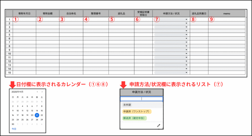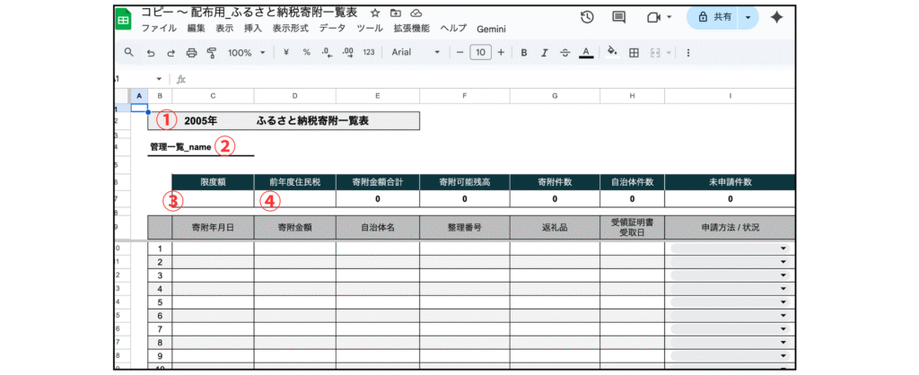 ふるさと納税管理シート(コピー用)はこちら👉️配布用_ふるさと納税寄附一覧表