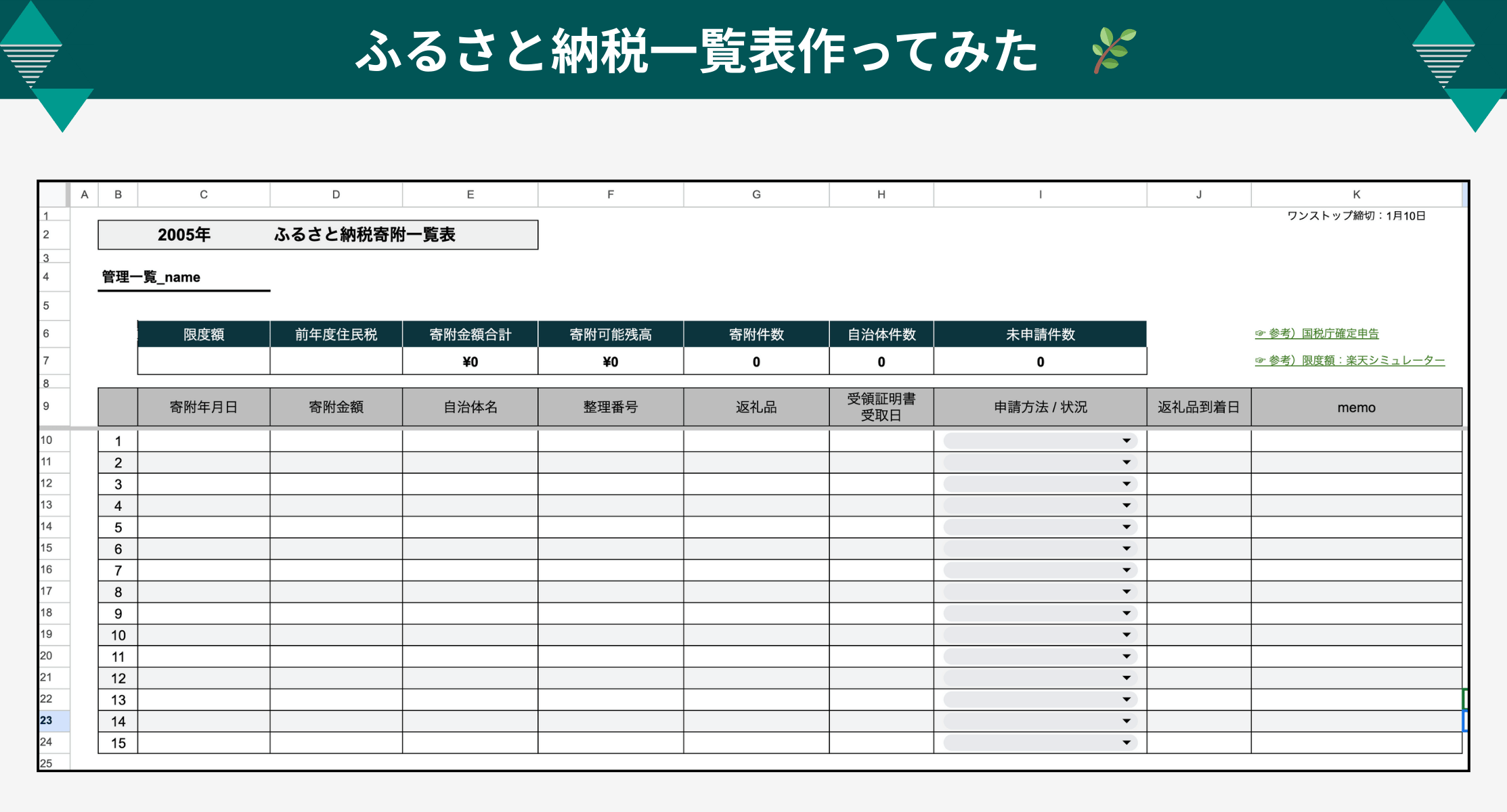 ふるさと納税管理シート(コピー用)はこちら👉️配布用_ふるさと納税寄附一覧表